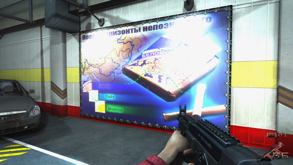 К сожалению я не всё отскринил, потому что игра довольно глючная и часто вылетает где-то по 10 минут. Поэтому верьте мне на слово. Блуждая дальше игрок оказывается в большой склад, где хранятся коробки с какими-то детскими подгузниками и сигаретами Беломорканал. А чтобы из этого место пройти дальше, нужно использовать очки.
